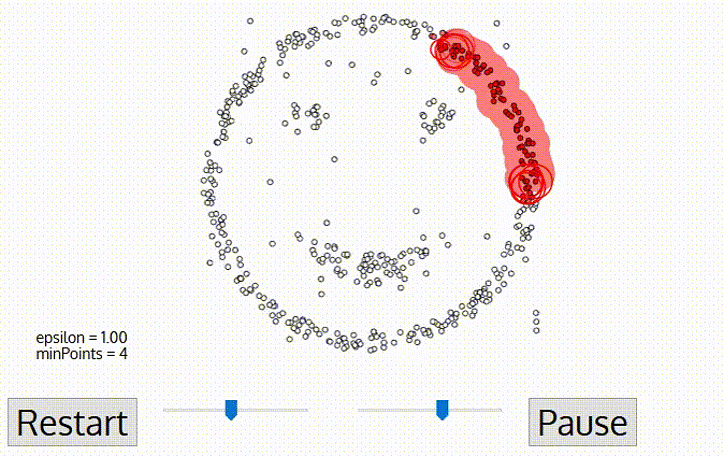 DBSCAN 算法是一种著名的密度聚类算法,它基于一组“邻域”参数 ( ϵ , M i n P t s ) (\epsilon, MinPts) ( ϵ , M i n P t s ) 来刻画样本分布的紧密程度。